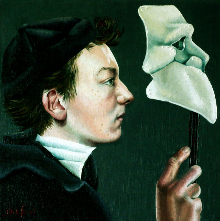 Este programa de TAN LEJOS TAN CERCA se emite en vivo este Miércoles 12 de Septiembre de 9 a 11 am (14 a 16) por 102,9 FM, Radio Pública de Quito. AQUÍ se puede escuchar el programa en vivo, en diferido y todos los programas anteriores realizados hasta hoy, cada uno con su temática propia. (Imagen: «Novizio con bauta» de Jane Ford)