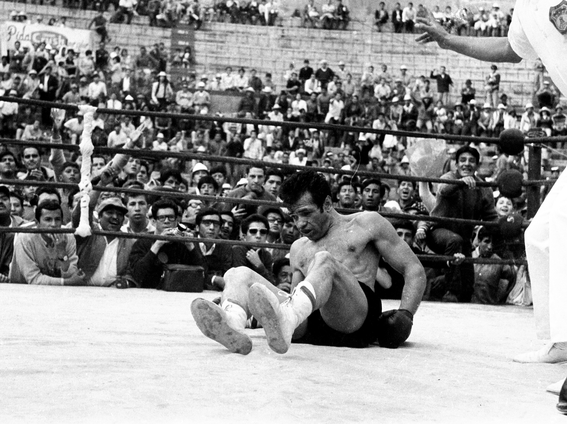 Este programa se emite, en vivo, el MARTES 5 DE MARZO, de 12:30 a 14:00 (17:30 – 19:00 GMT) por Distrito FM 102.9. No está disponible, hasta nuevo aviso, el servicio de transmisión en vivo por Internet. Se puede escuchar en este sitio web, sin embargo, en diferido, y todos los programas anteriores. Foto: Jaime Balladares en la lona de la Plaza de Toros, en su derrota versus Ramiro «Clay» Bolaños, 1970. Archivo Histórico del Banco Central.